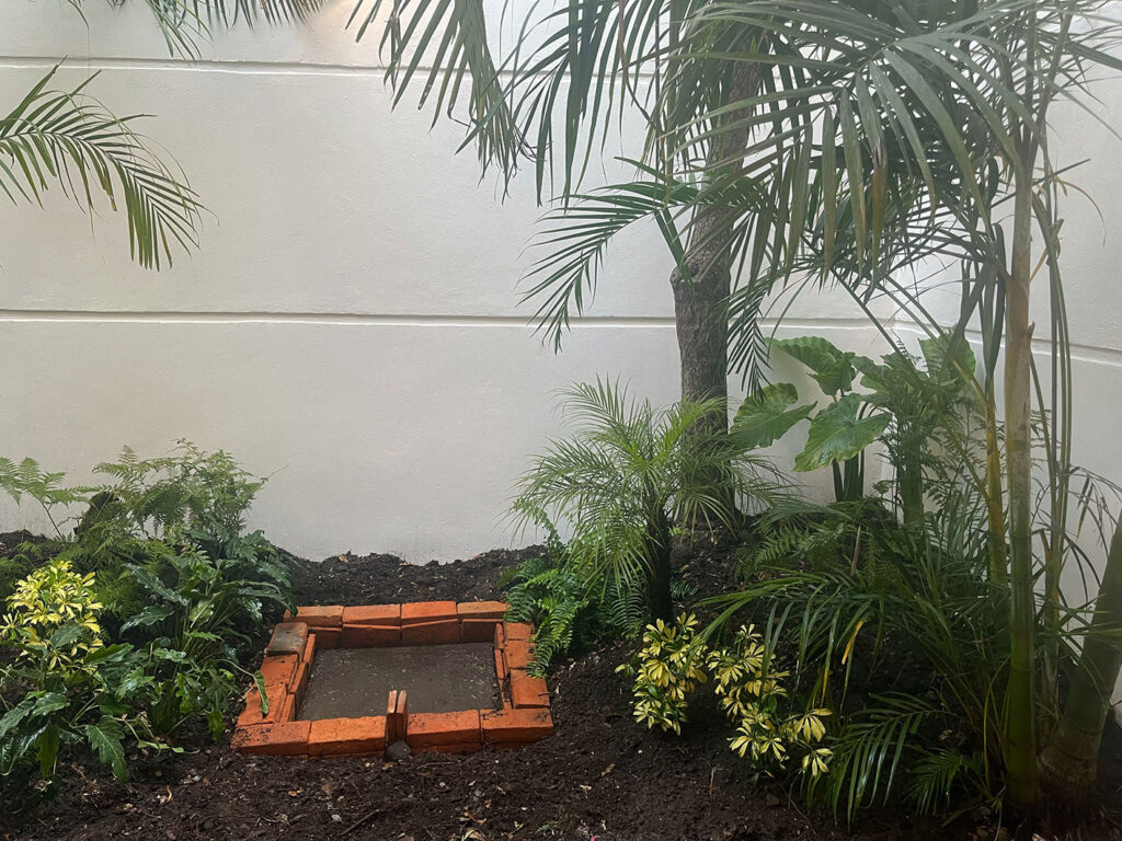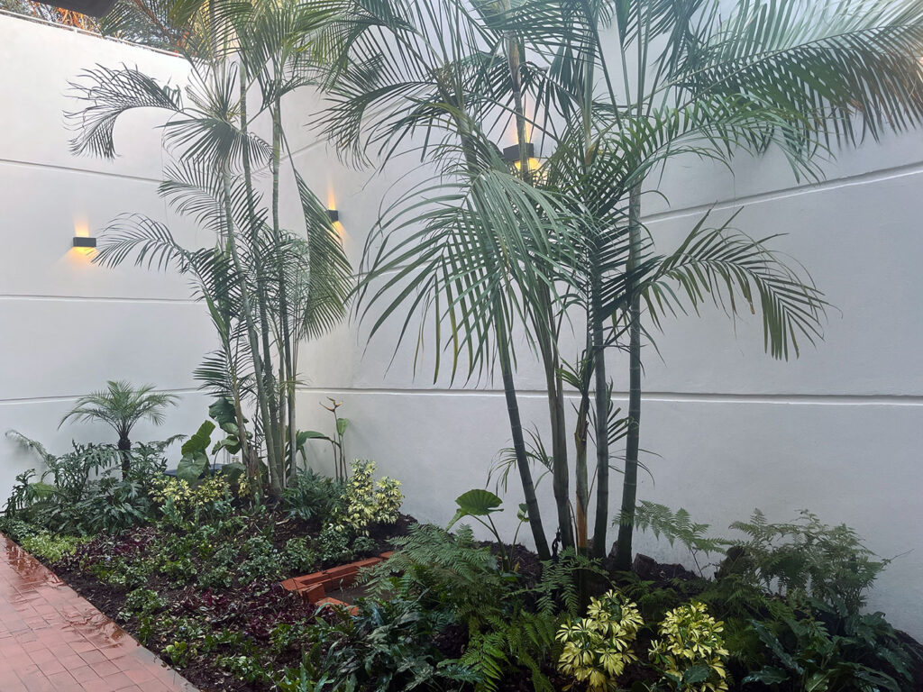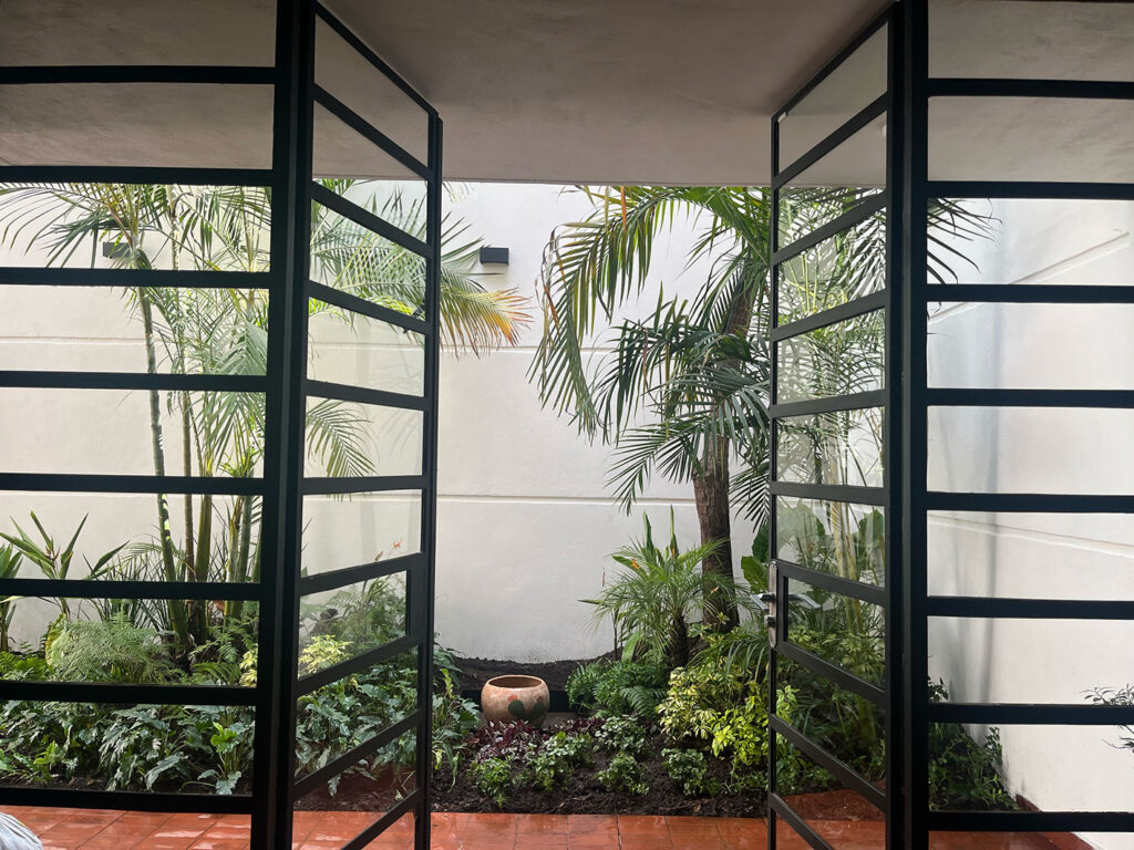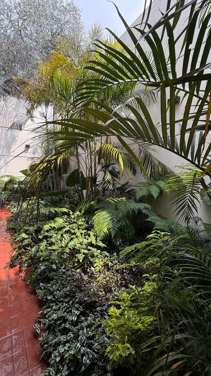 Casa remodelada en el tradicional barrio de Coyoacán, donde se respetaron las Palmas originales que había en el terreno, como eje de un patio interior diseñado en función de las condiciones de sombra propias del sitio. La selección vegetal y la composición espacial generan un ambiente fresco, íntimo y en armonía con la arquitectura de la casa que se aprecia desde los bellos ventanales de las áreas comunes de la vivienda.